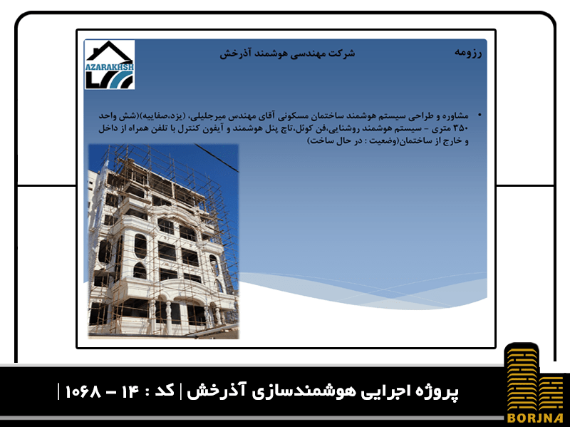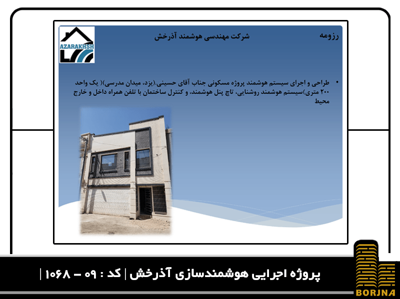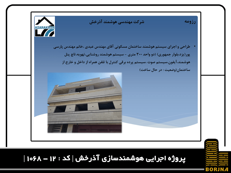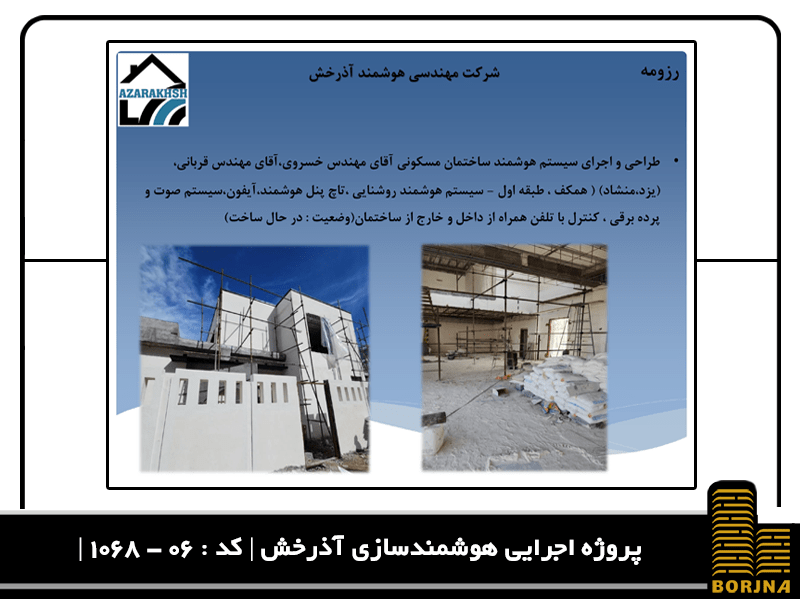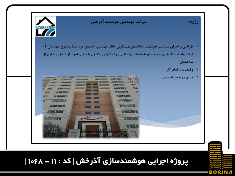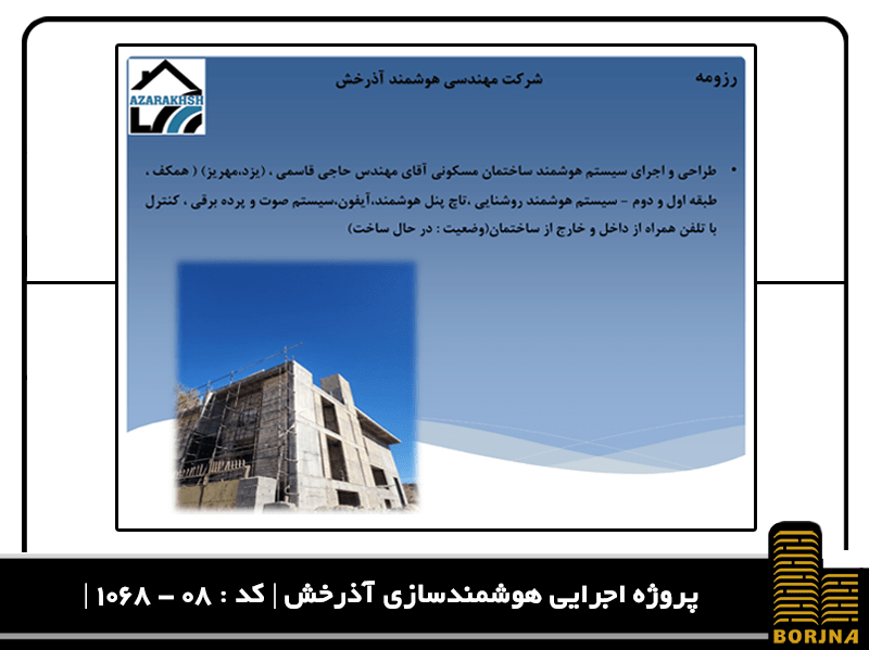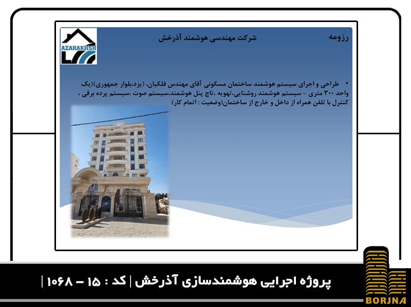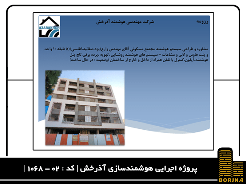 پروژه های اجرایی هوشمندسازی آذرخش | مدیریت : آقای رئیسی